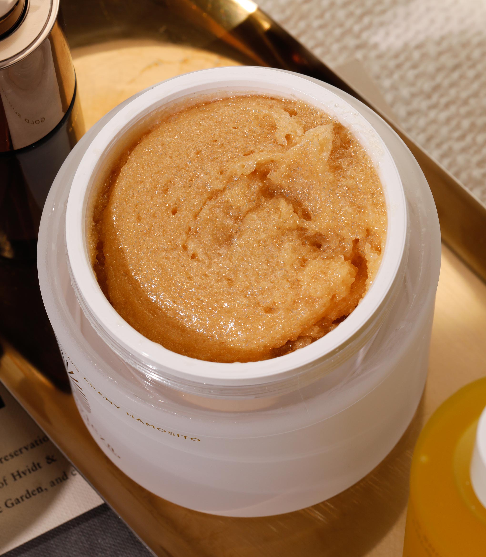 The Gold Sugar Scrub will smooth and refine skin from neck-to-toe, while the Refining Facial Polisher will brighten a dull, lackluster complexion.