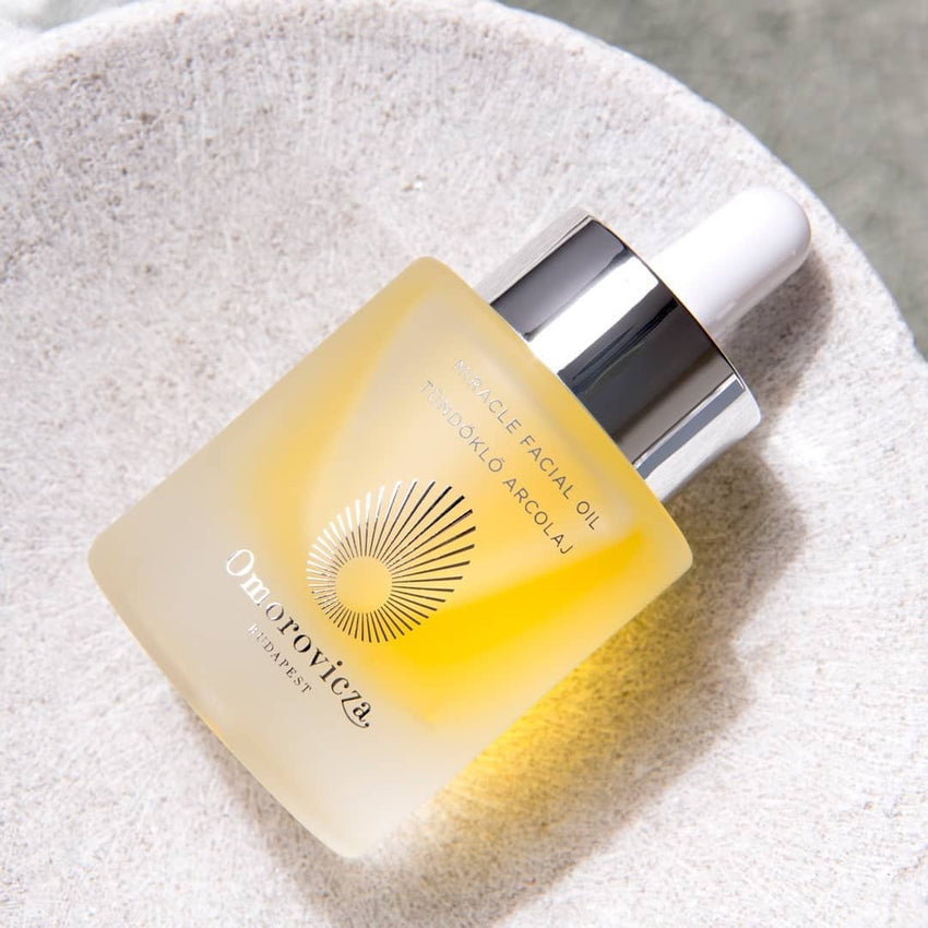 Our luxurious Miracle Facial Oil contains tocopherol to nourish, hydrate and protect skin from environmental damage. Its lightweight formula replenishes like a rich cream, yet absorbs instantly like a serum to reveal a glowing complexion.