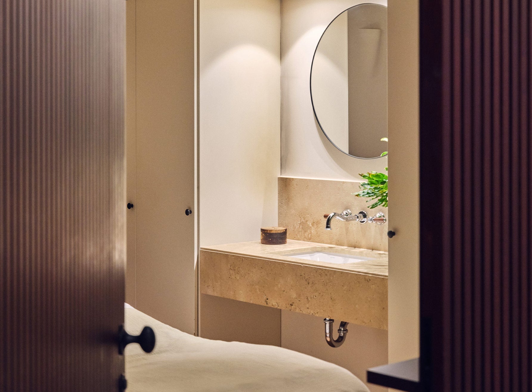 Reflective deep blue resins, natural limestone, and flesh-toned tiling celebrate the colours of the Rácz and recall Hungarian thermal sources. The ironmongery and copper details celebrate our Ottoman heritage and the elemental power of the Earth.