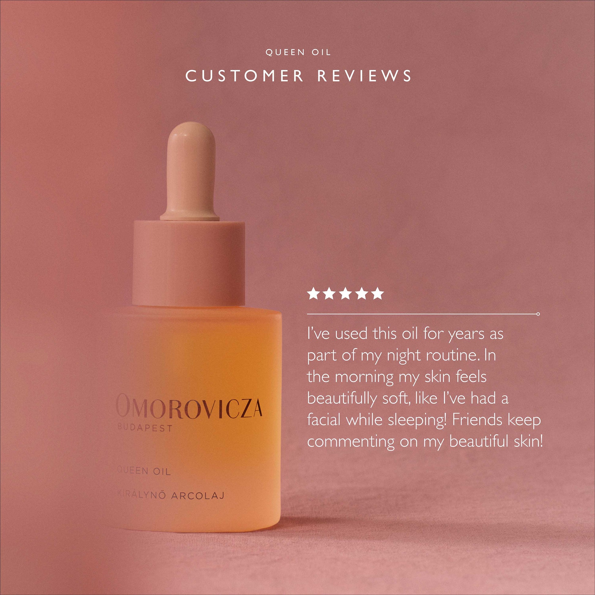 - Come morning, cleanse skin and massage a small amount of Queen Serum into skin until absorbed.