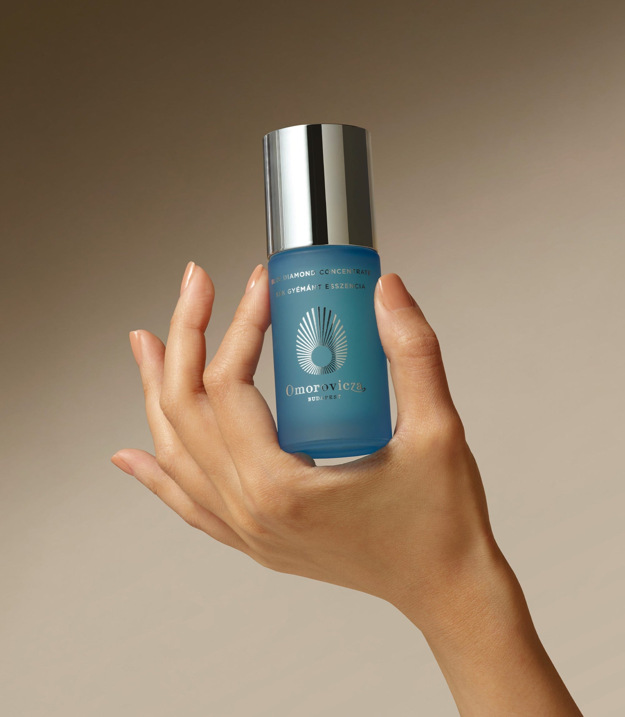 Apply Blue Diamond Eye Cream around the eye contour to lift and energise and Blue Diamond Concentrate to redensify and restore vitality.
