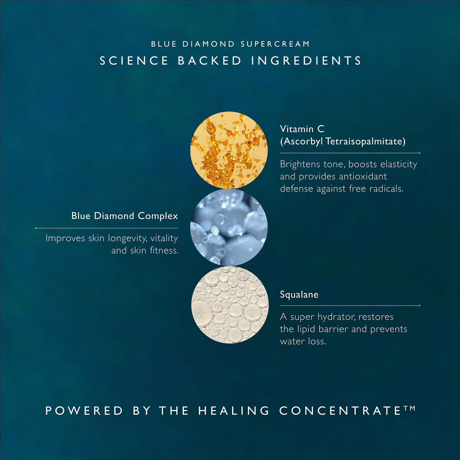 A luxurious moisturiser, Blue Diamond Supercream harnesses powerful and indulgent ingredients to hydrate and firm skin.