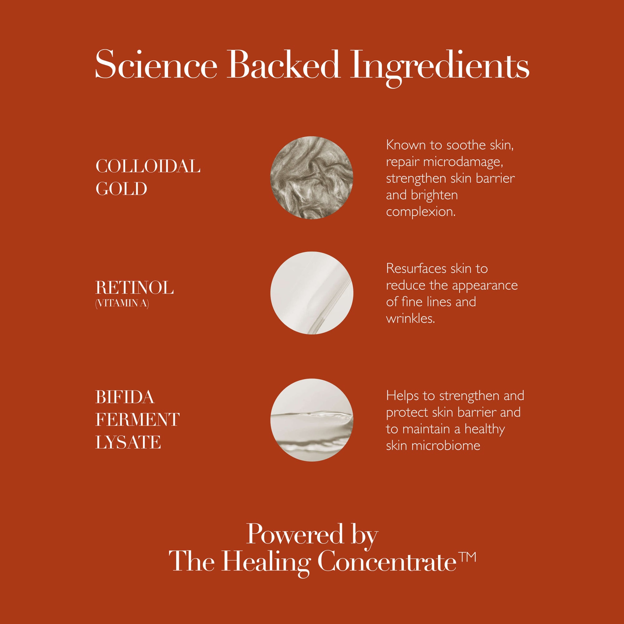 Harness the transformative power of Colloidal Gold with Gold Night Drops, a potent triple-action treatment that works to repair, renew and brighten skin overnight. This anti-ageing serum deeply nourishes and strengthens skin while reducing the appearance of fine lines, wrinkles, and age spots. Infused with Retinol, it resurfaces and smooths the complexion, promoting a more youthful appearance. Bifida Ferment helps to repair and protect skin from photo-damage, while boosting its immunity. Wake up to rejuvenated skin and a radiant, healthy glow.