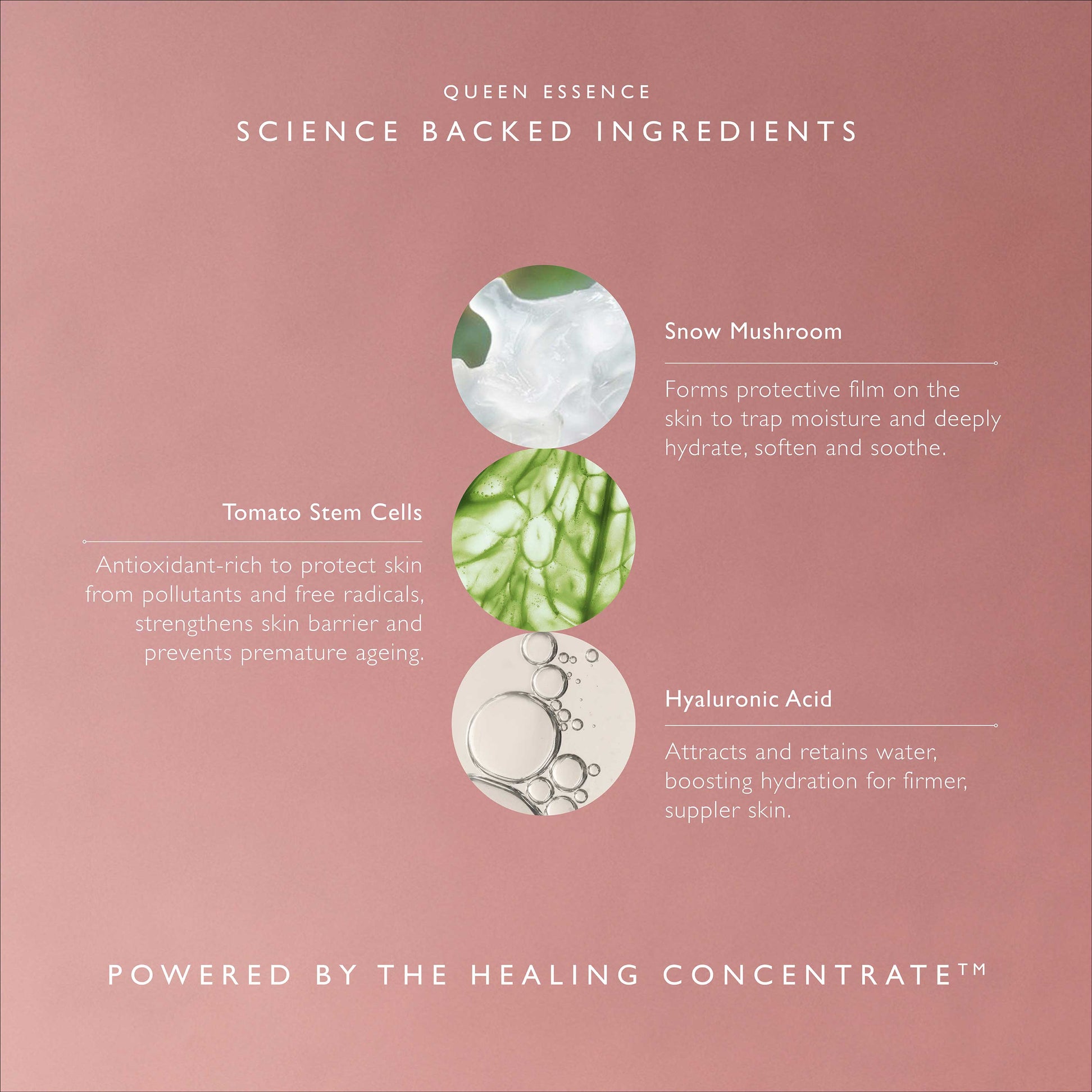 Our plumping, nourishing essence is a post-cleanse skin-prep essential. Combining natural snow mushroom and hyaluronic acid to deeply hydrate and boost moisture levels, while antioxidant tomato stem cells protect skin from urban pollutants to help defend against premature ageing. Use daily before applying treatment serums and moisturiser. Powered by Healing ConcentrateTM.